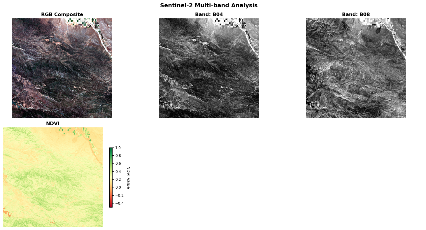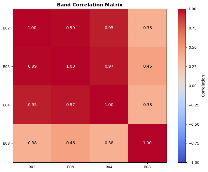 - π Performed Multi-band Analysis: Calculated vegetation indices and band correlations