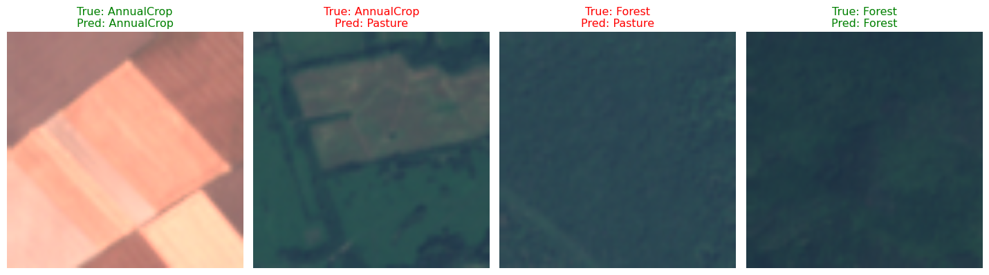 axes[i].set_title(f"True: {true_label}\nPred: {pred_label}", color=color)